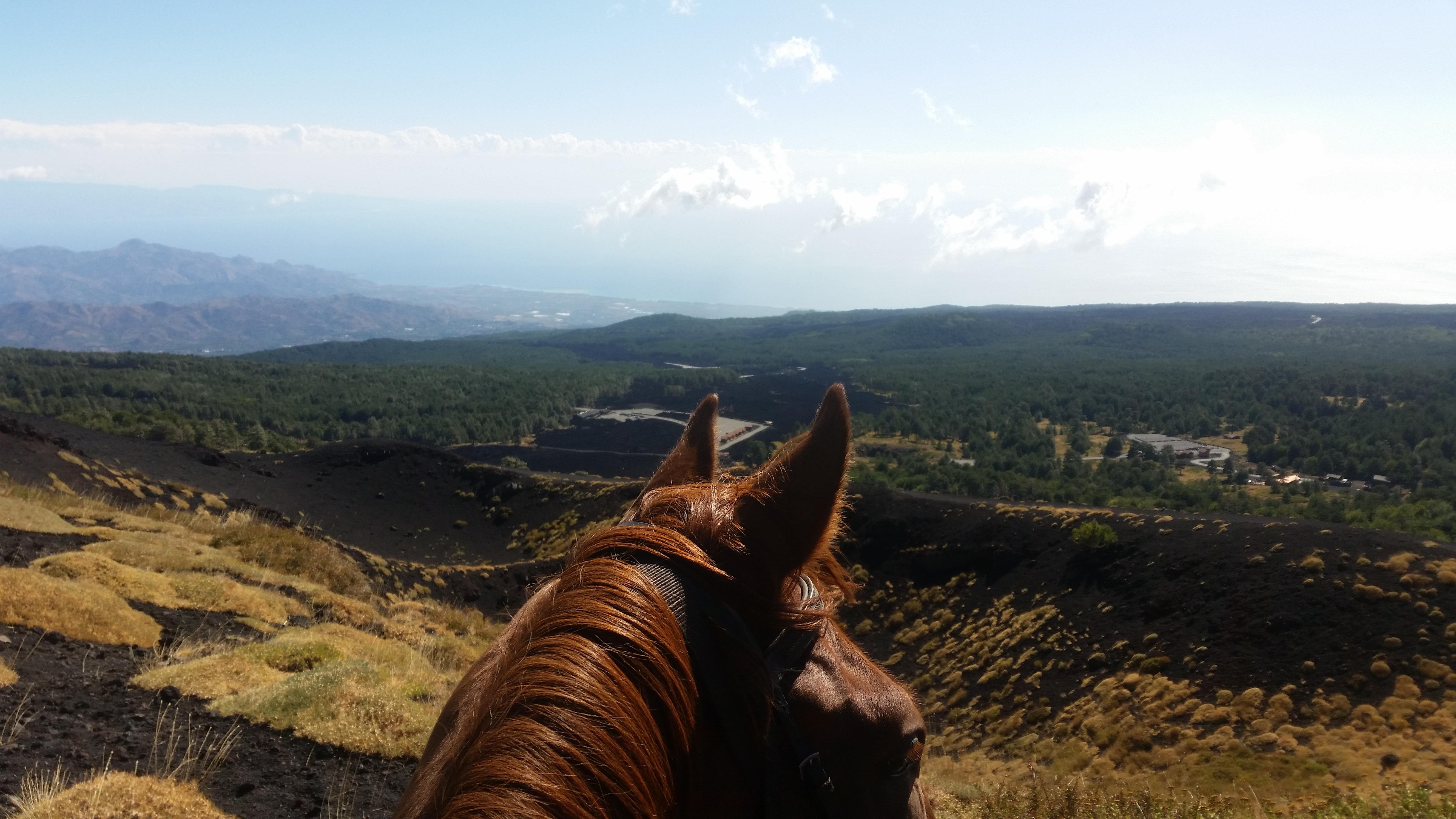 Horseback riding on the beach of Marina di Cottone near Taormina, along the water’s edge, with a few episodes into the water, until you get to the river.
